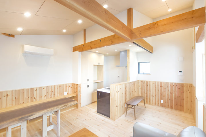 床・腰壁・梁 全て無垢の木を使っています