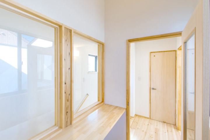 階段上部に室内窓を設けたので階段室も明るい空間になっています
