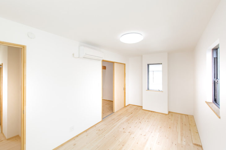 壁一面の収納。地窓を設置することで通風もばっちりです
