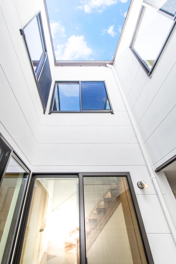 中庭を設け、家の中全体に採光と通風を可能にしました