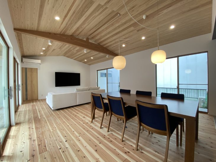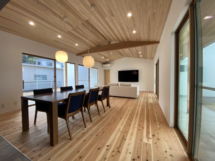 | 使用商材 | 屋根:ガルバリウム 床:無垢杉フローリング 天井:杉羽目板 窓:断熱サッシ |