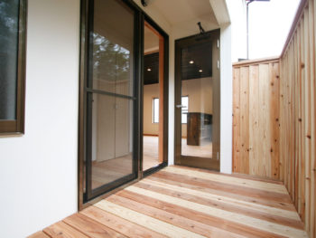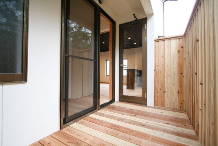 ウッドデッキは少し高めの木製フェンスで囲まれています。これだとお風呂上りに涼んでいても、お洗濯物を干していても周りの視線は気になりません!