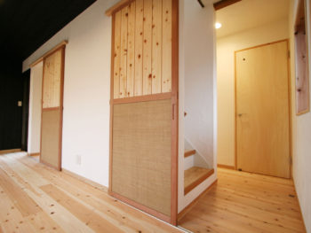 12帖の玄関及び洋間は、玄関及びご主人の書斎に変身しました。